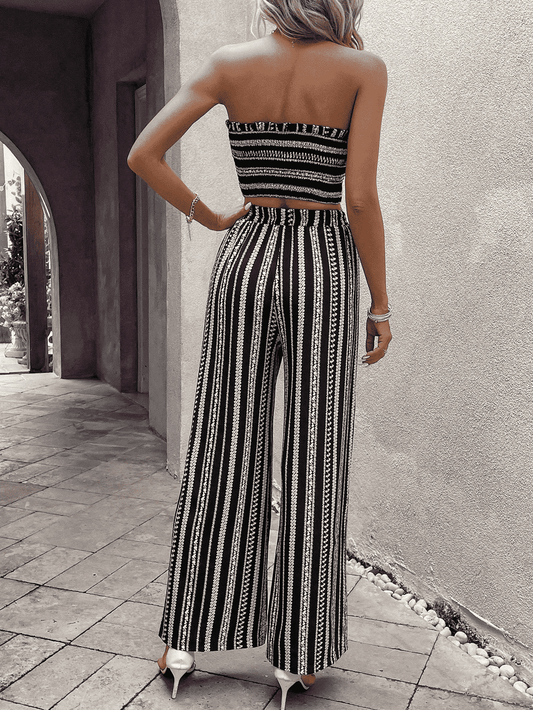 Raw Hem Straight Neck Cropped Top and Long Pants Set