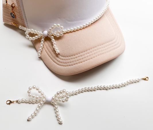 Trucker Hat Chain- Pearl/ White Middle Bow