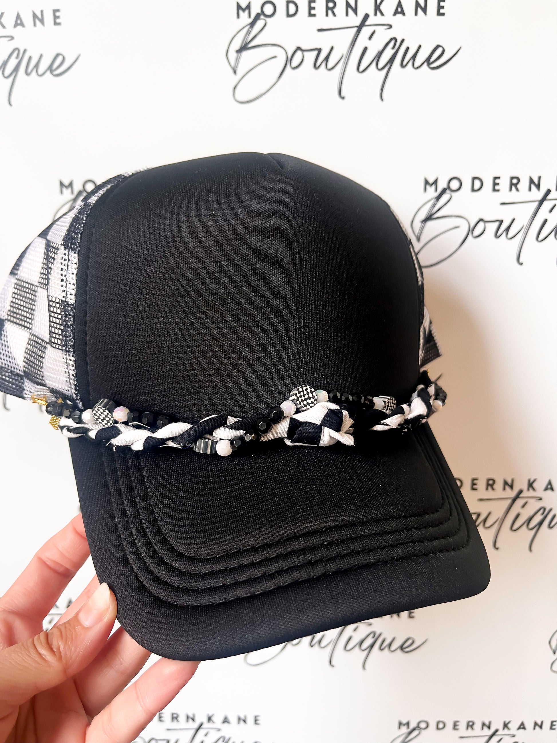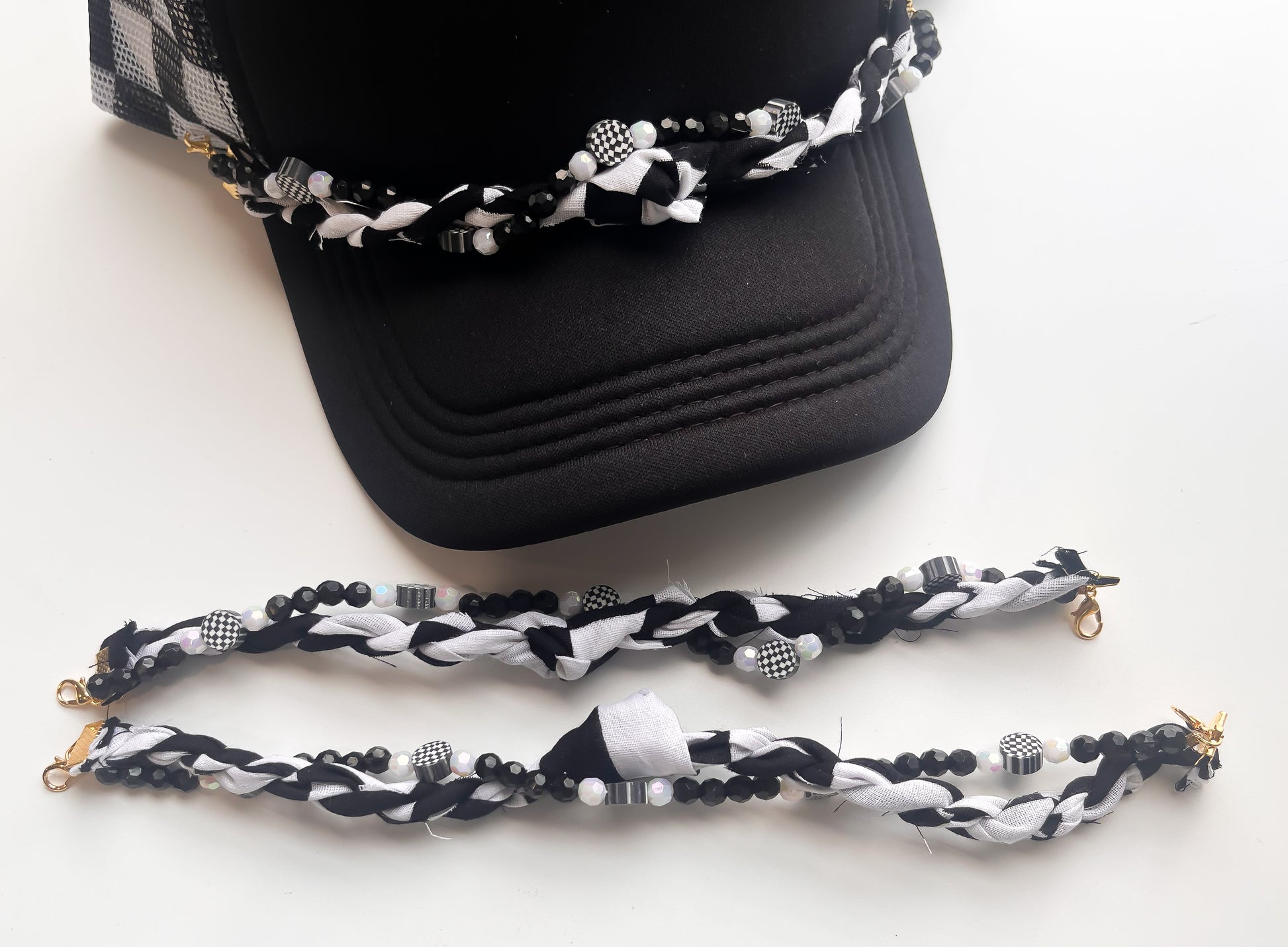 These Hat Chains fit Perfectly Across the Brim of your Trucker Hats and Attach to the MESH Part of the hat with a Lobster Clasp (Already attached to our hat chains)