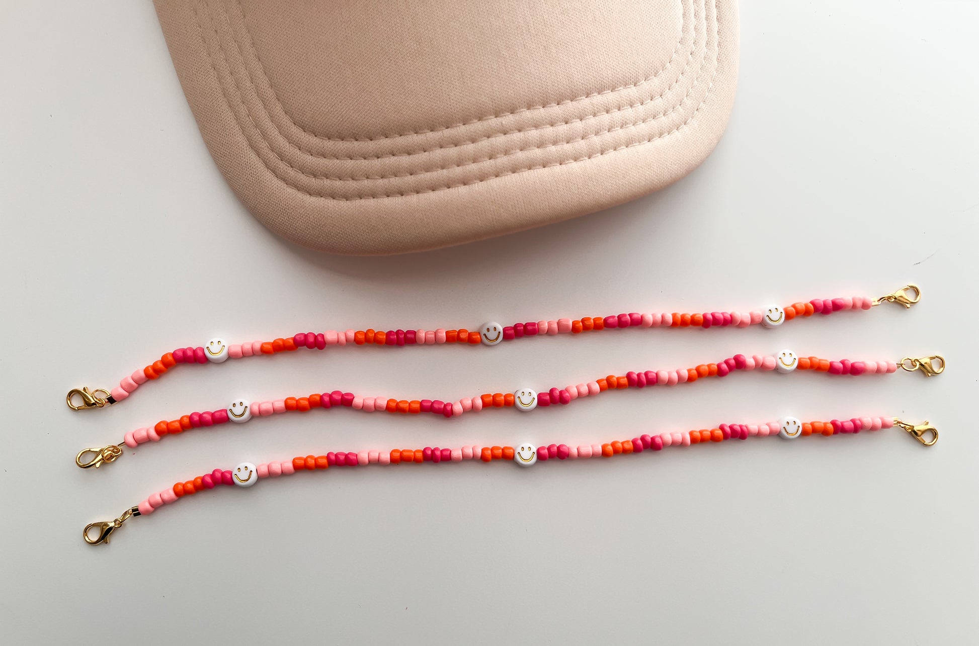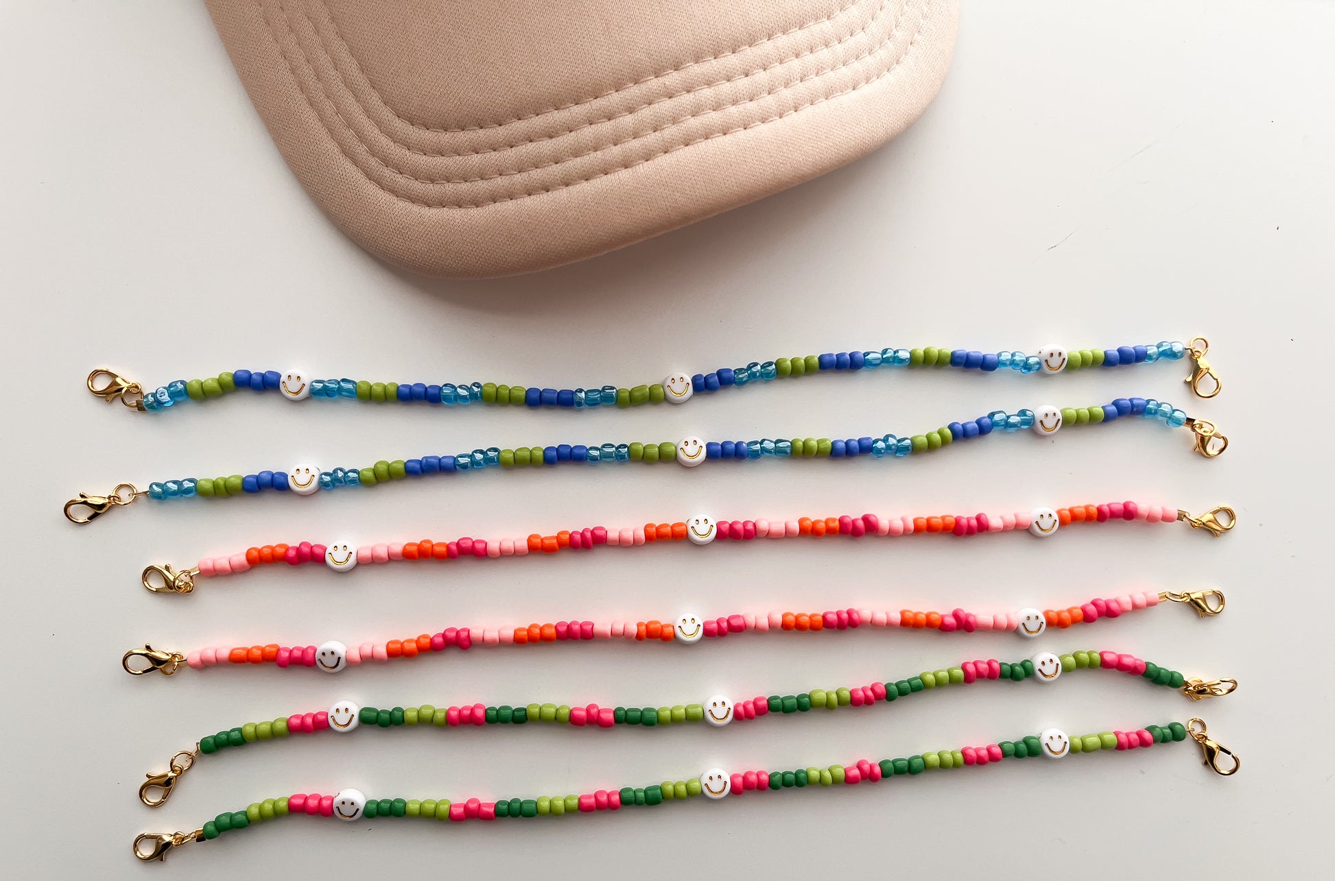 Colored Beaded/ Small Smiley Trucker Hat Chain