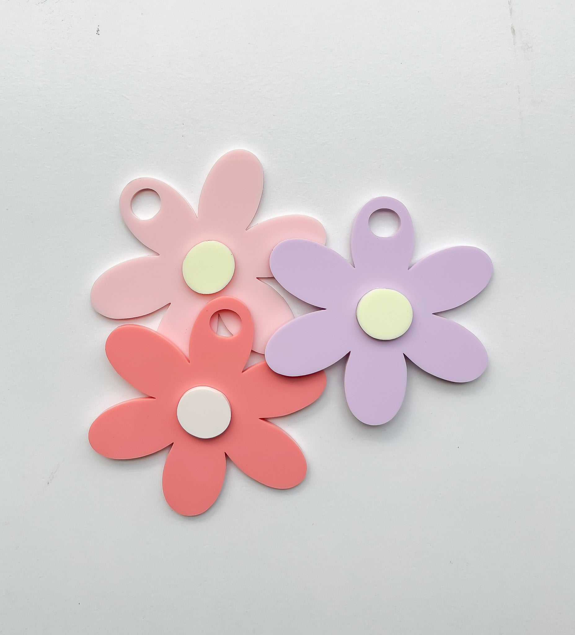 (Colors used in photos are: Coral with bone center, Cotton Candy with pale yellow center (NOT SHOWN ON COLOR CHART YET), Lilac with pale yellow center)