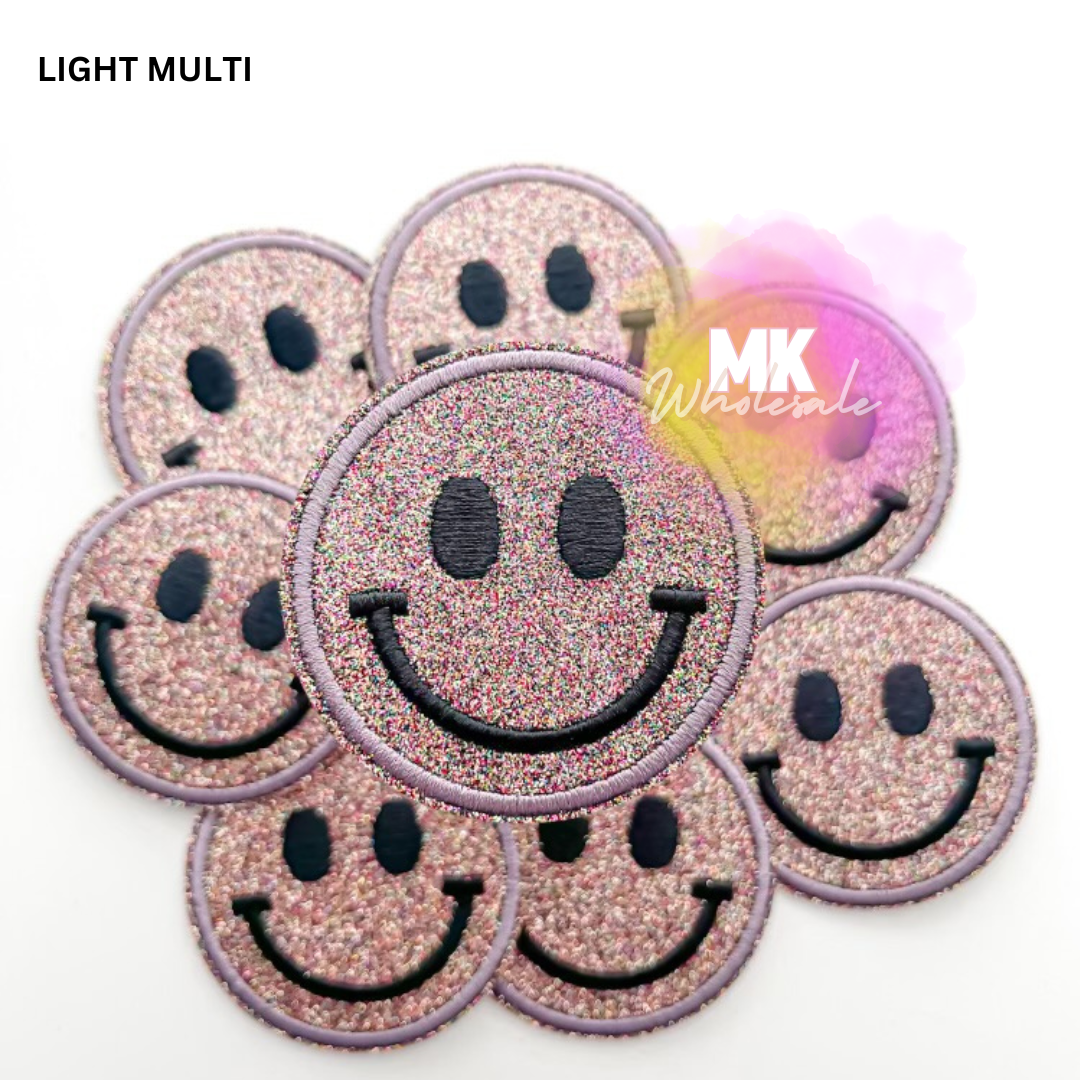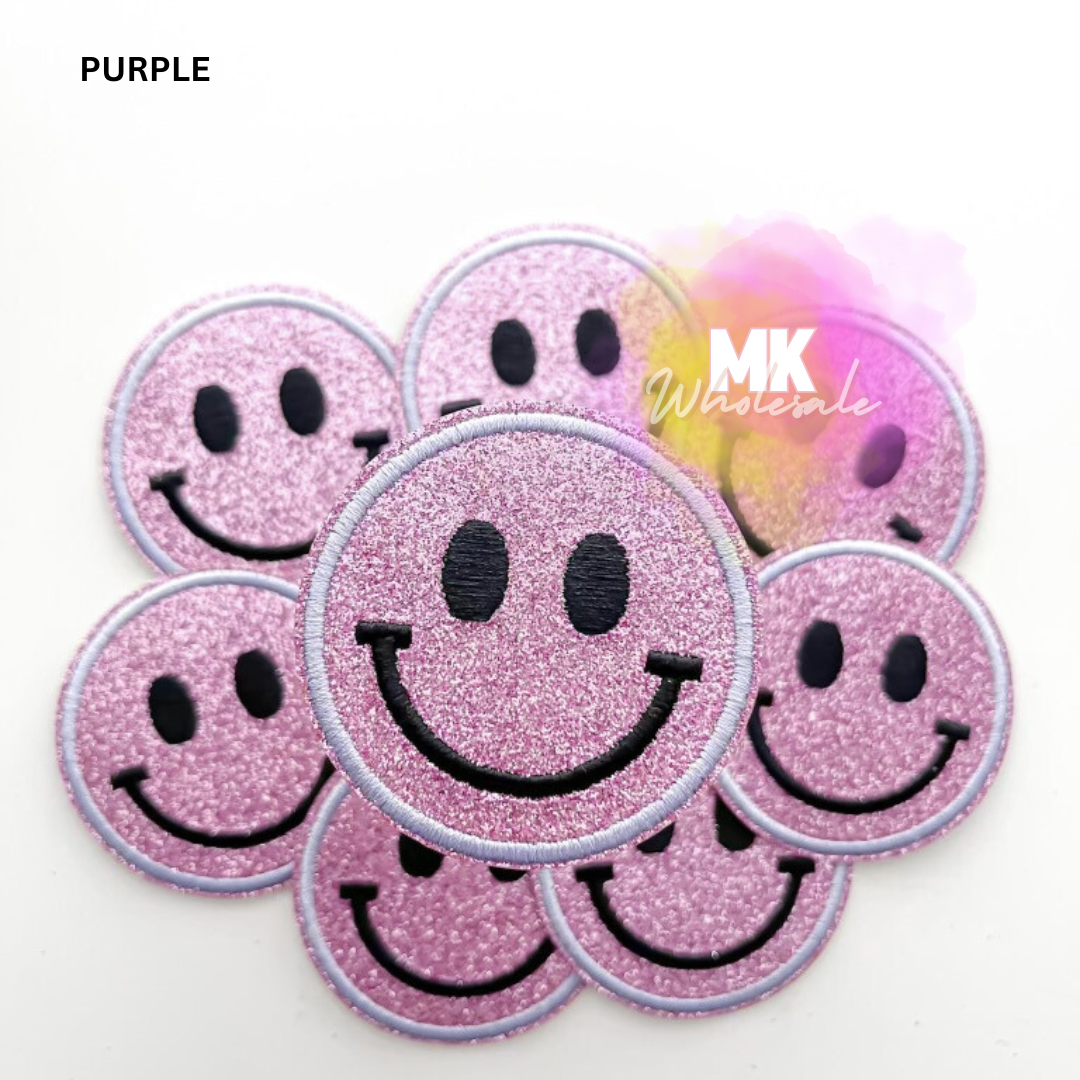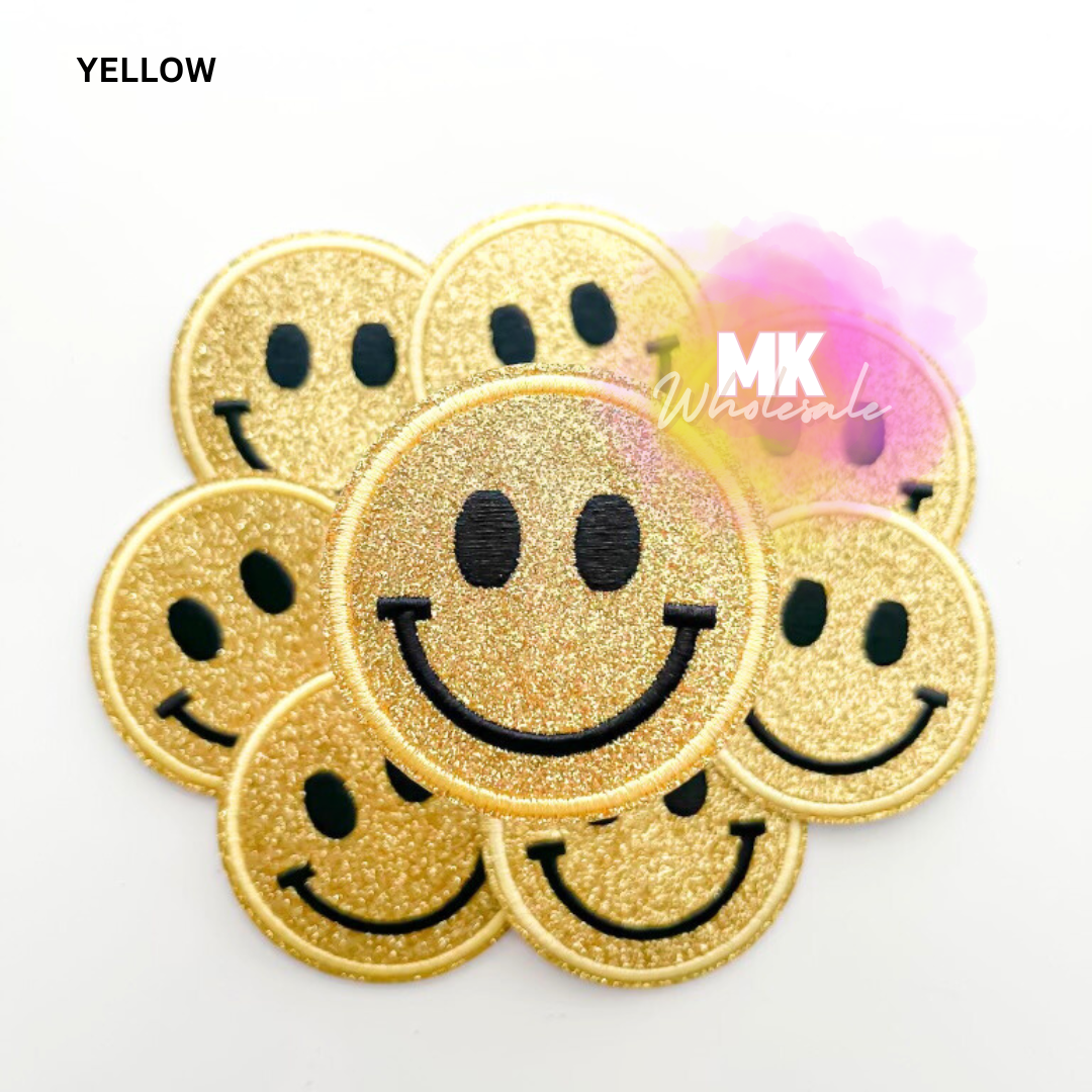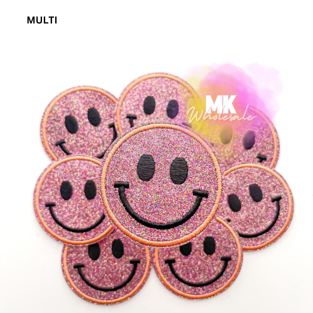 Embroidered Iron on Patch- "Glitter Smileys"