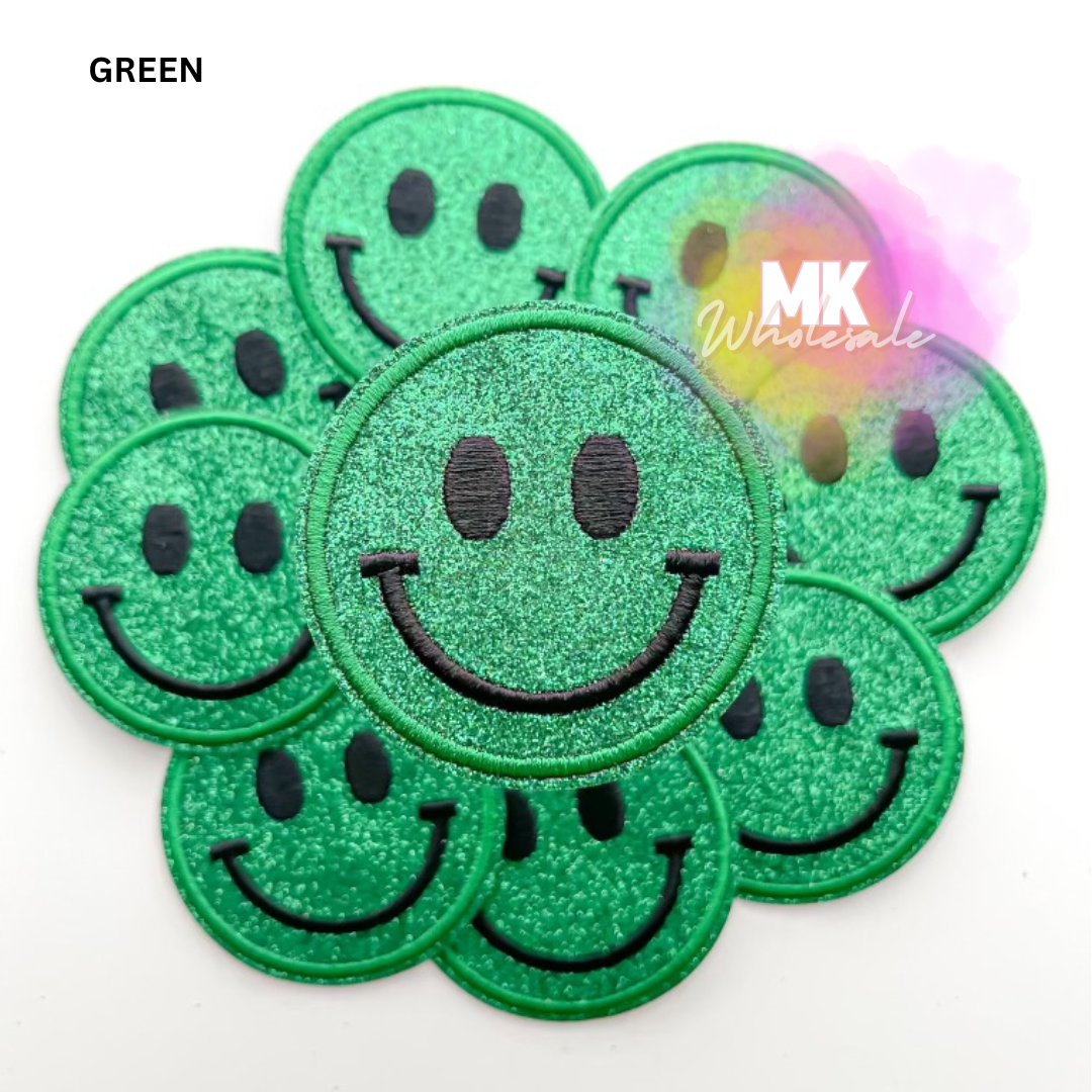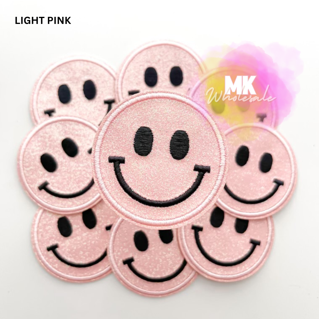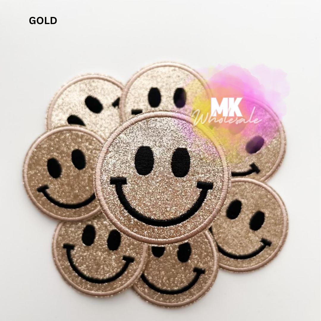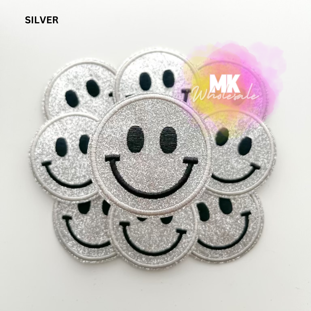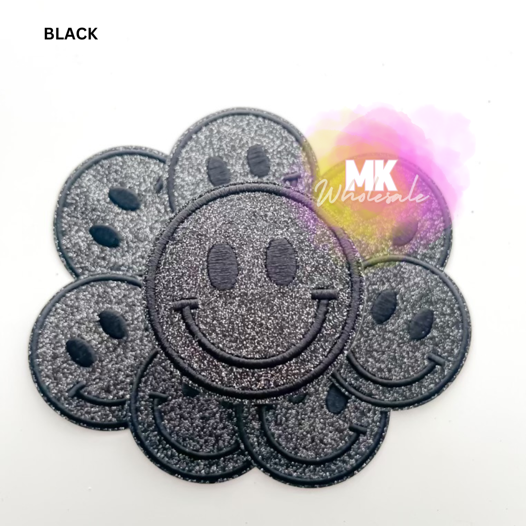 Embroidered Iron on Patch- "Glitter Smileys"