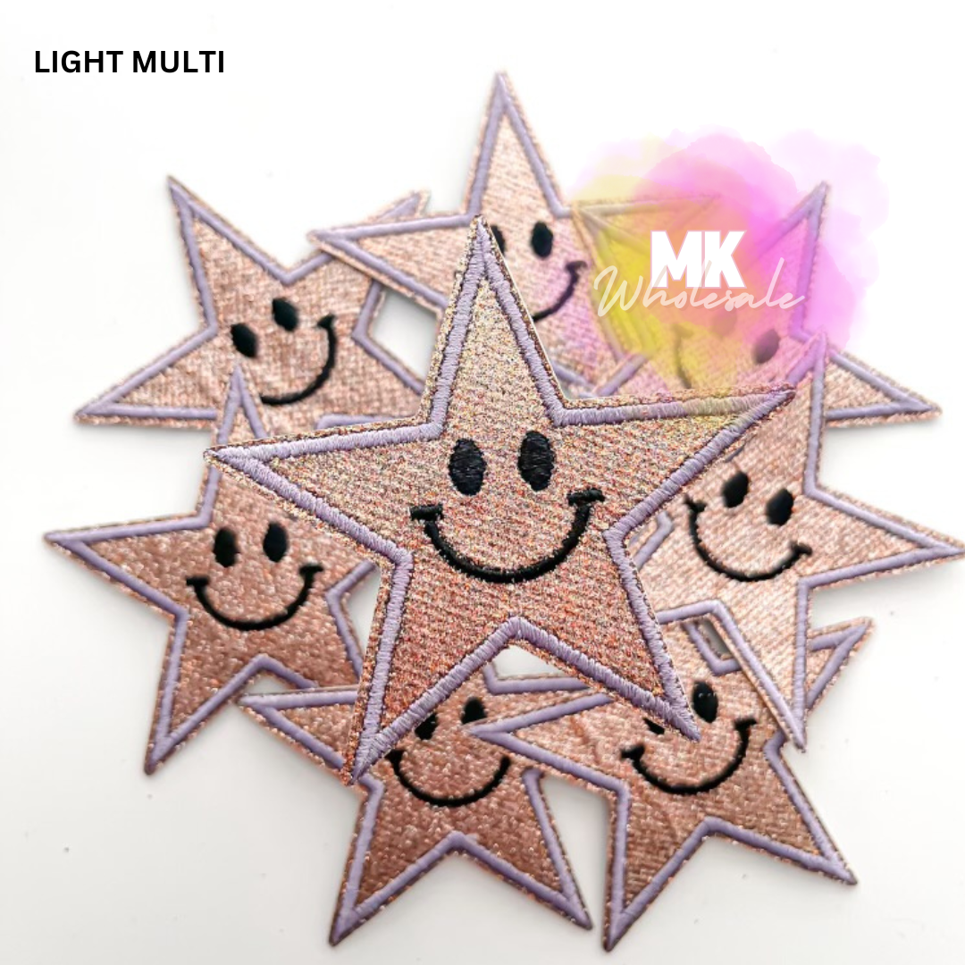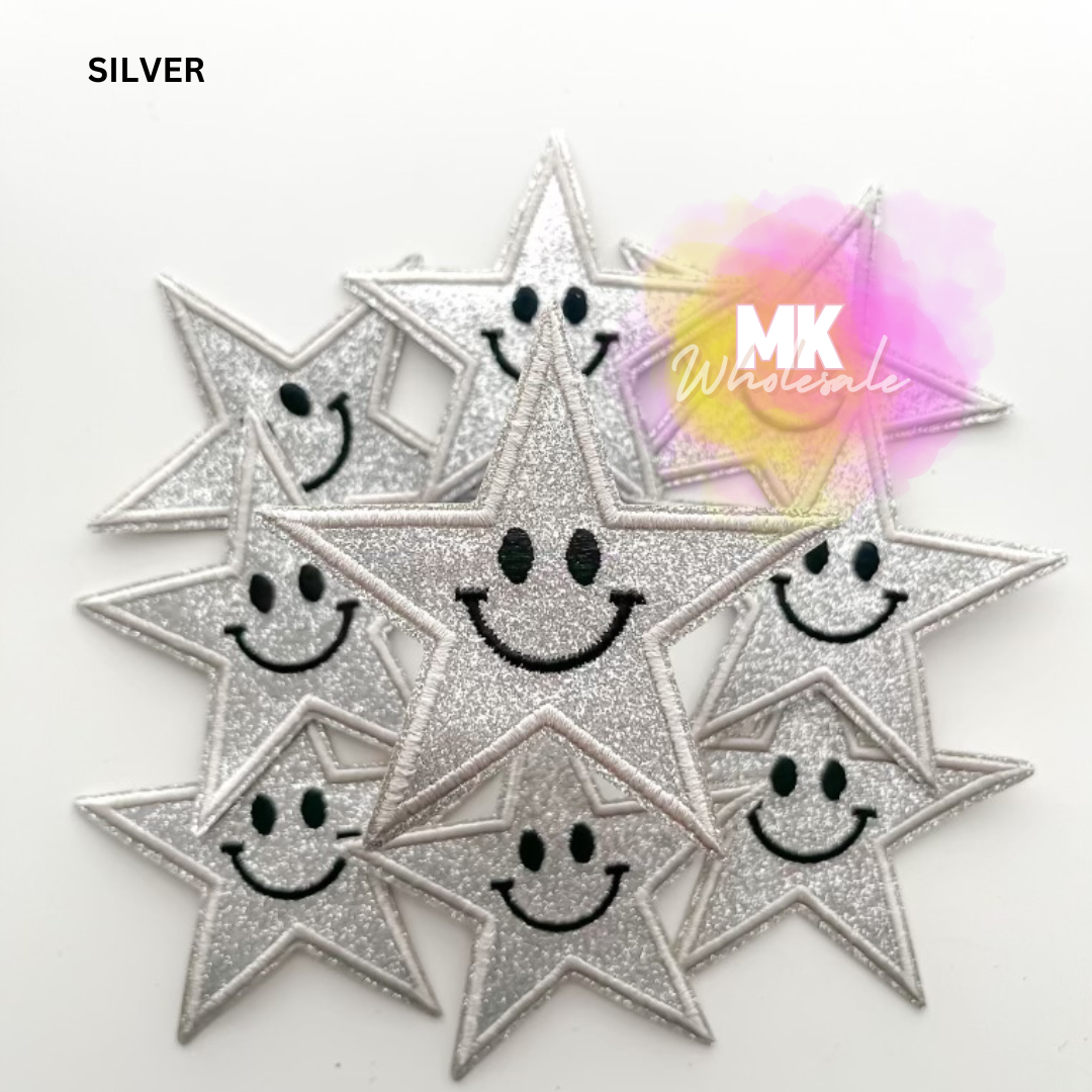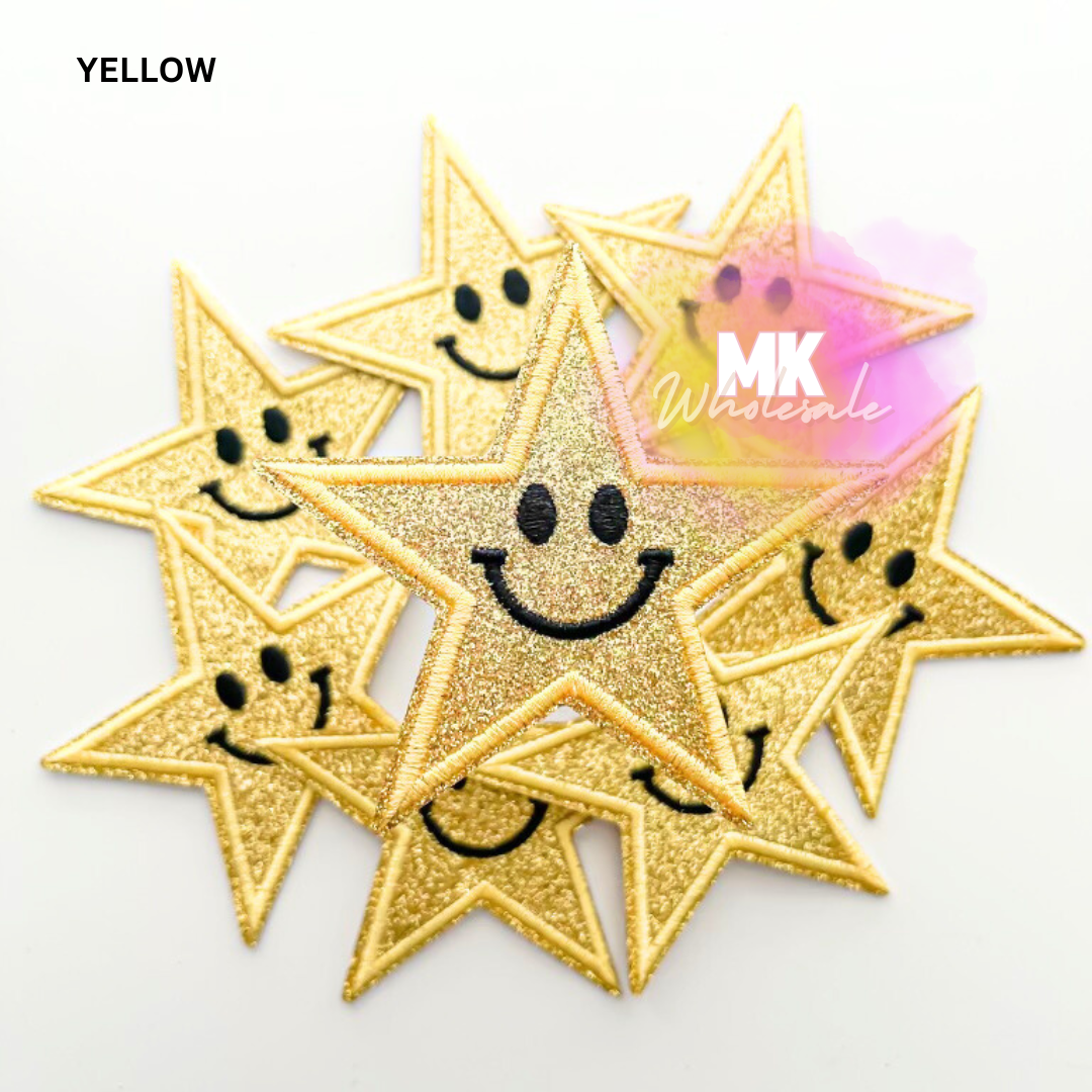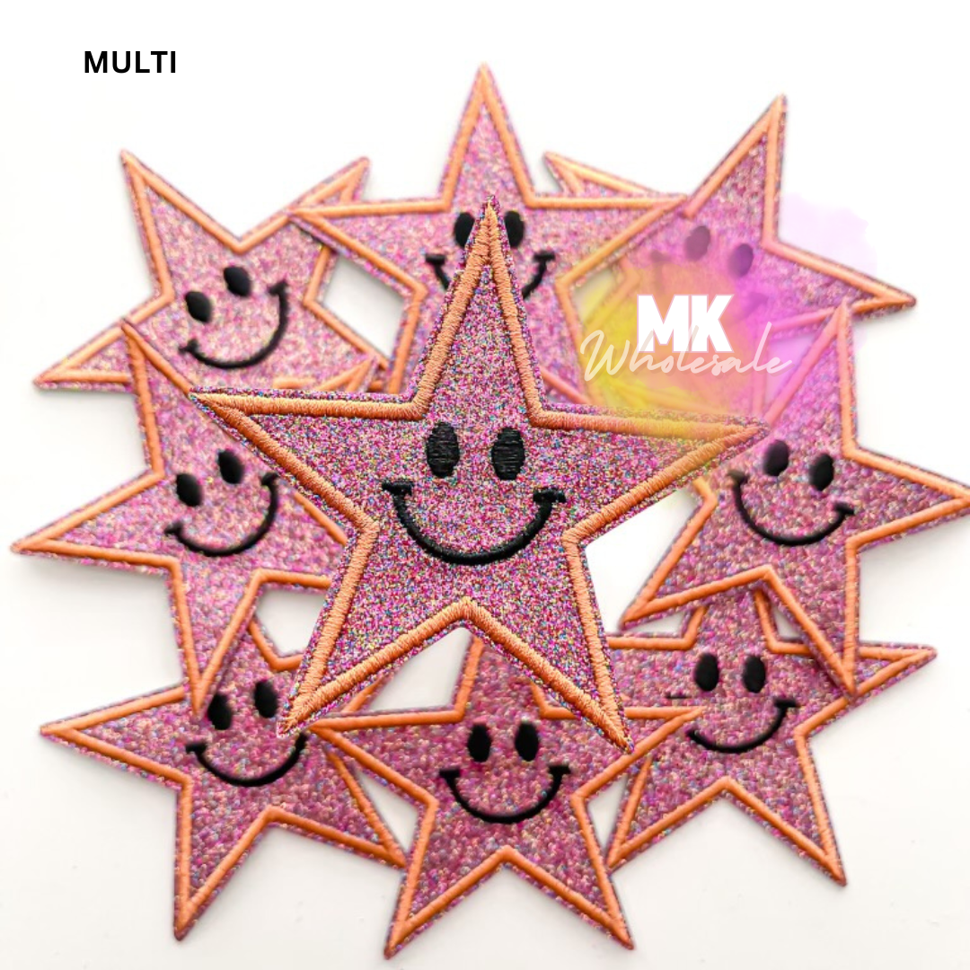 Embroidered Iron on Patch- "Glitter Star Smileys"
