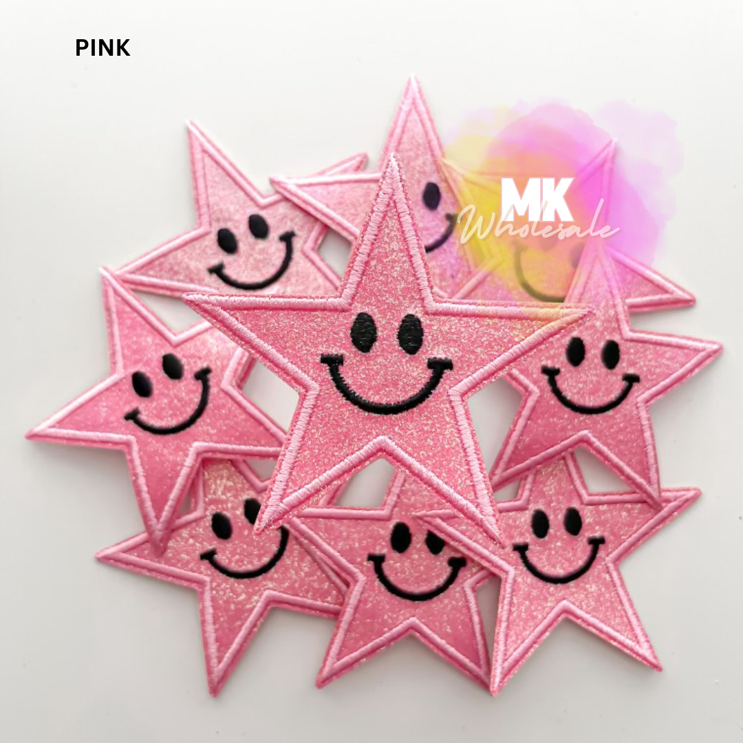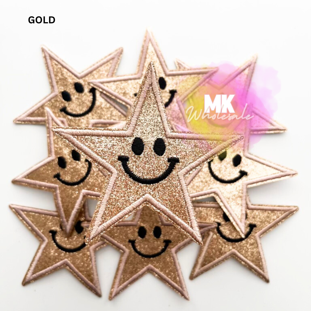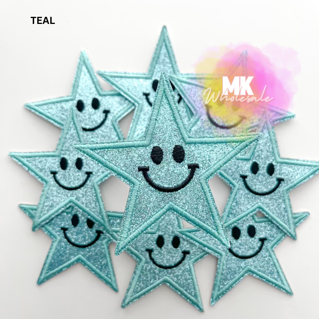 Embroidered Iron on Patch- "Glitter Star Smileys"