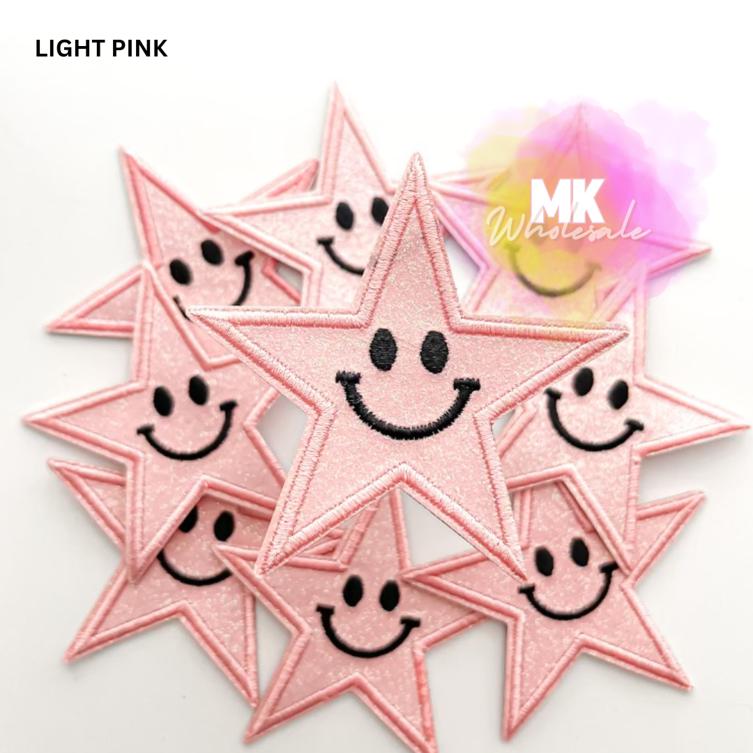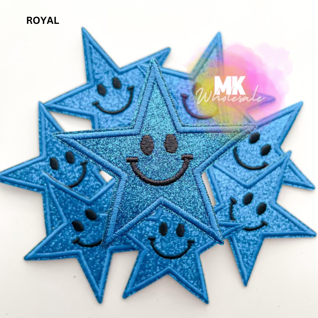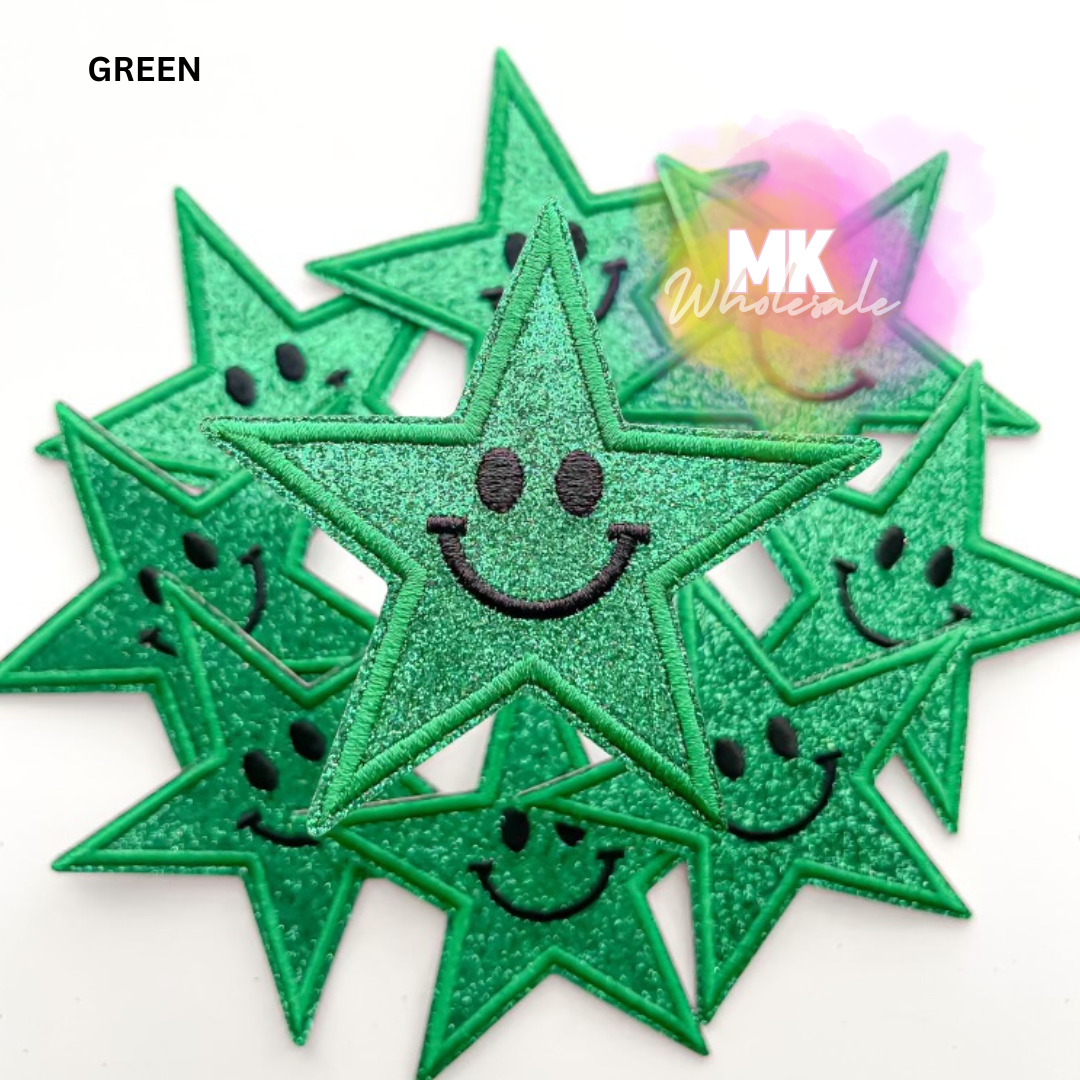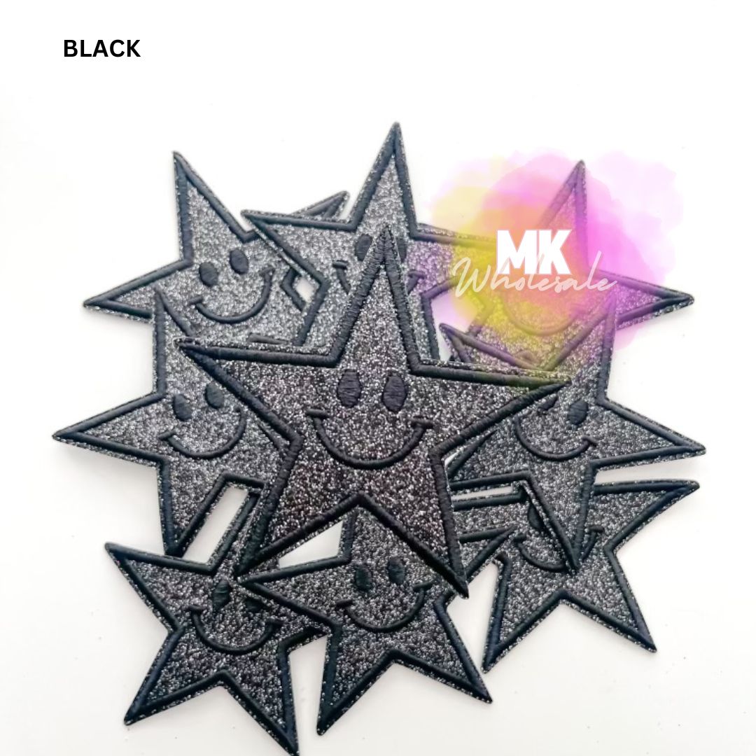 Embroidered Iron on Patch- "Glitter Star Smileys"