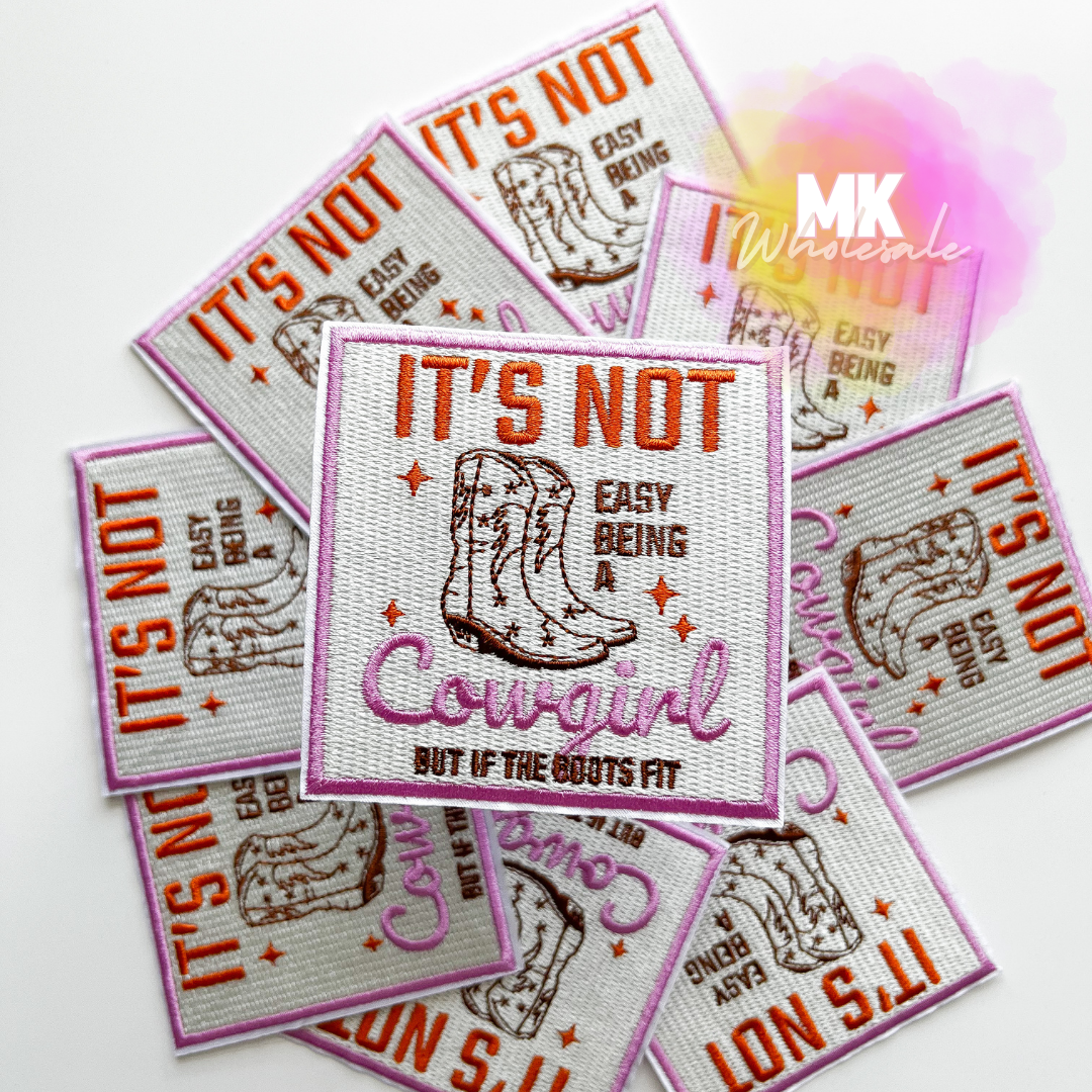 Embroidered Iron on Patch- "It's not easy being a Cowgirl, But if the boot fits"