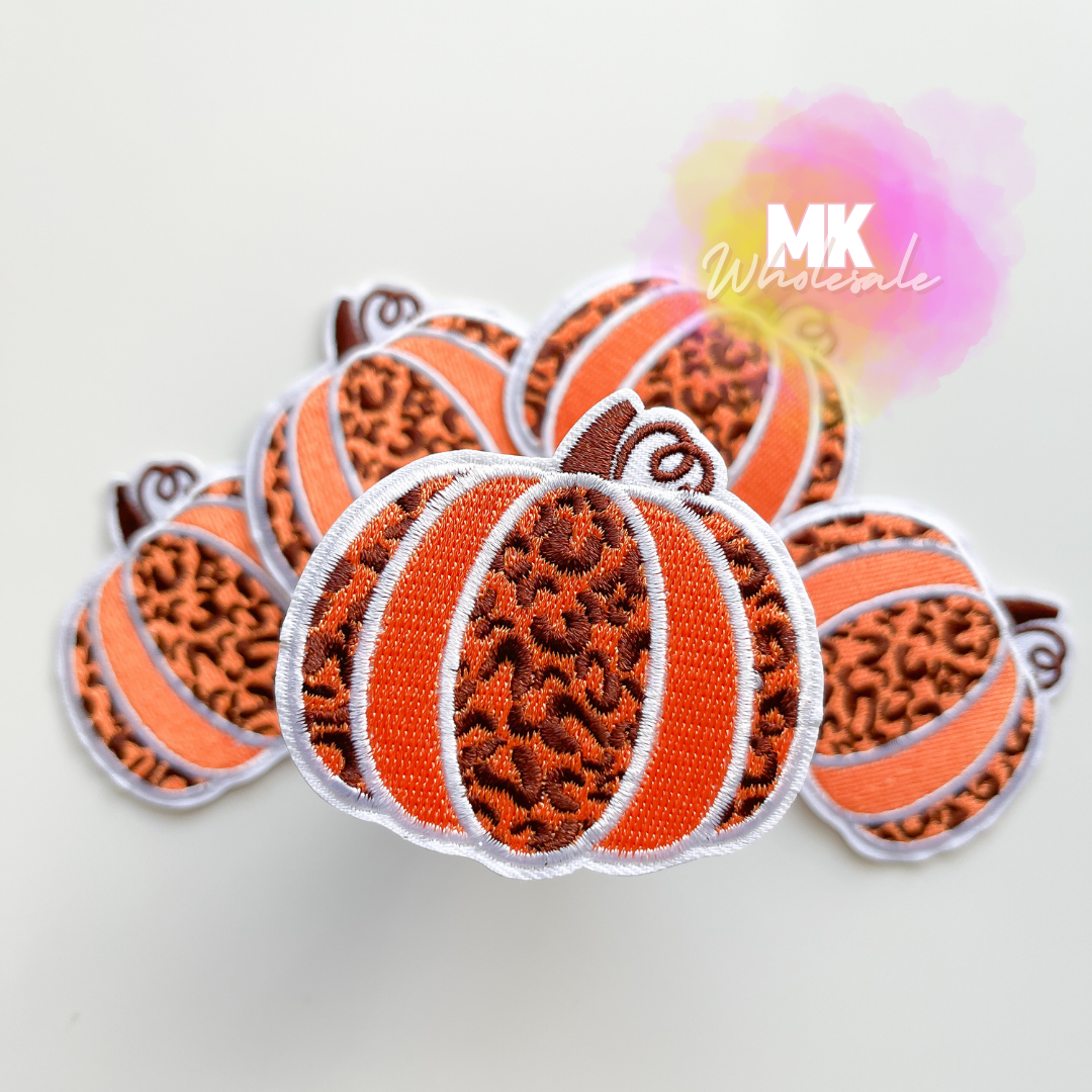 Embroidered Iron on Patch-Orange Leopard Pumpkin