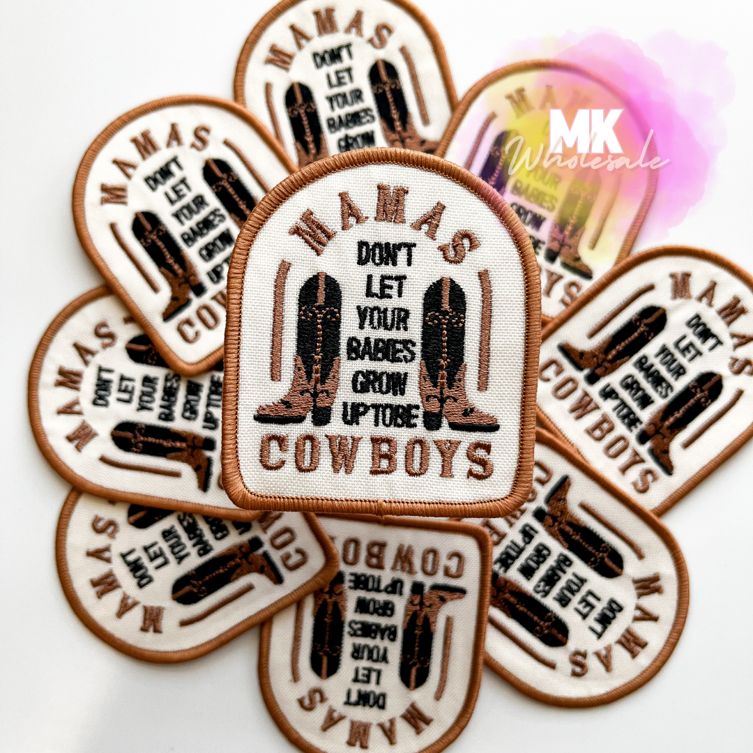 Embroidered Iron on Patch- "Mamas Cowboys"