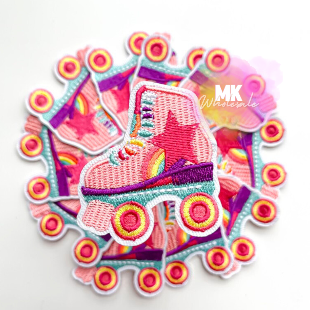 Embroidered Iron on Patch- "Pink Star Roller skate"
