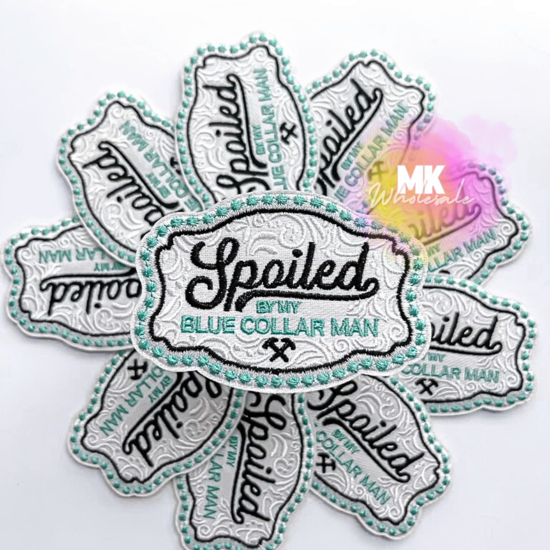 Embroidered Iron on Patch- "Spoiled by my blue collar man"