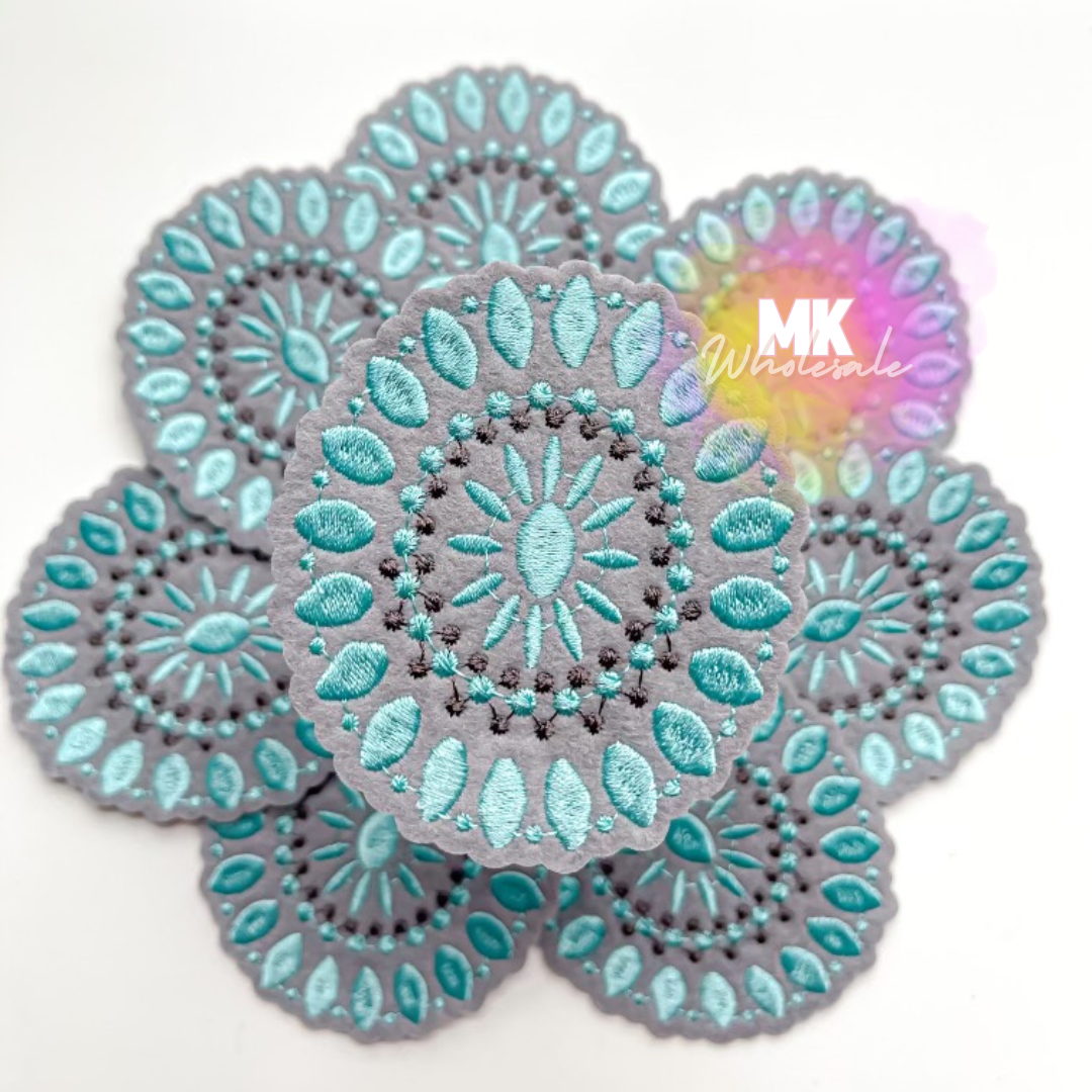 Embroidered Iron on Patch- "Turquoise Rock Buckle"