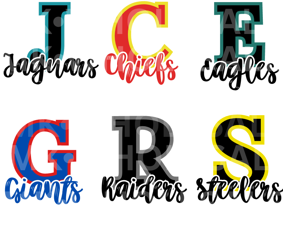 TYPE YOUR TEAM NAME/ COLORS WANTED IN THE CUSTOMIZE BOX (you will see options to choose from based on what’s shown in this photo. If a different letter/team wanted, please specify in custom box