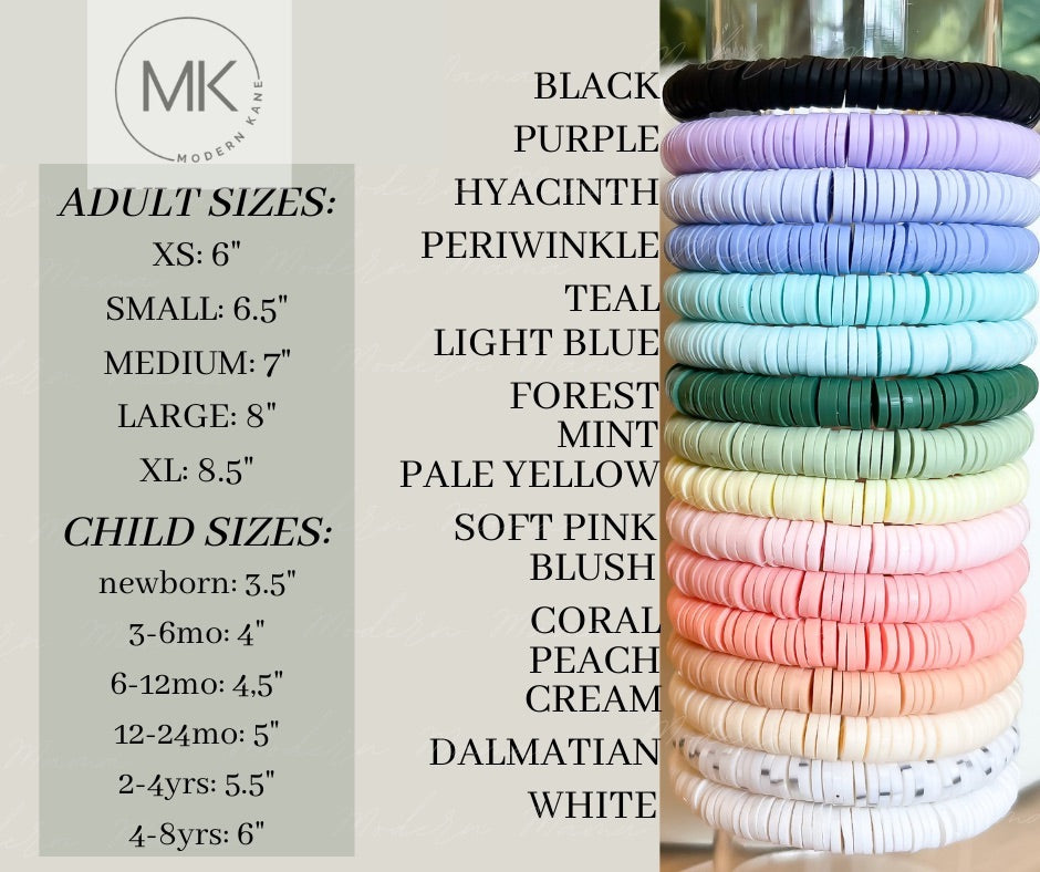|**PLEASE NOTE: If you need a smaller or larger bracelet than our sizes listed, note in the Personalized Box and I will happily accommodate all requests.