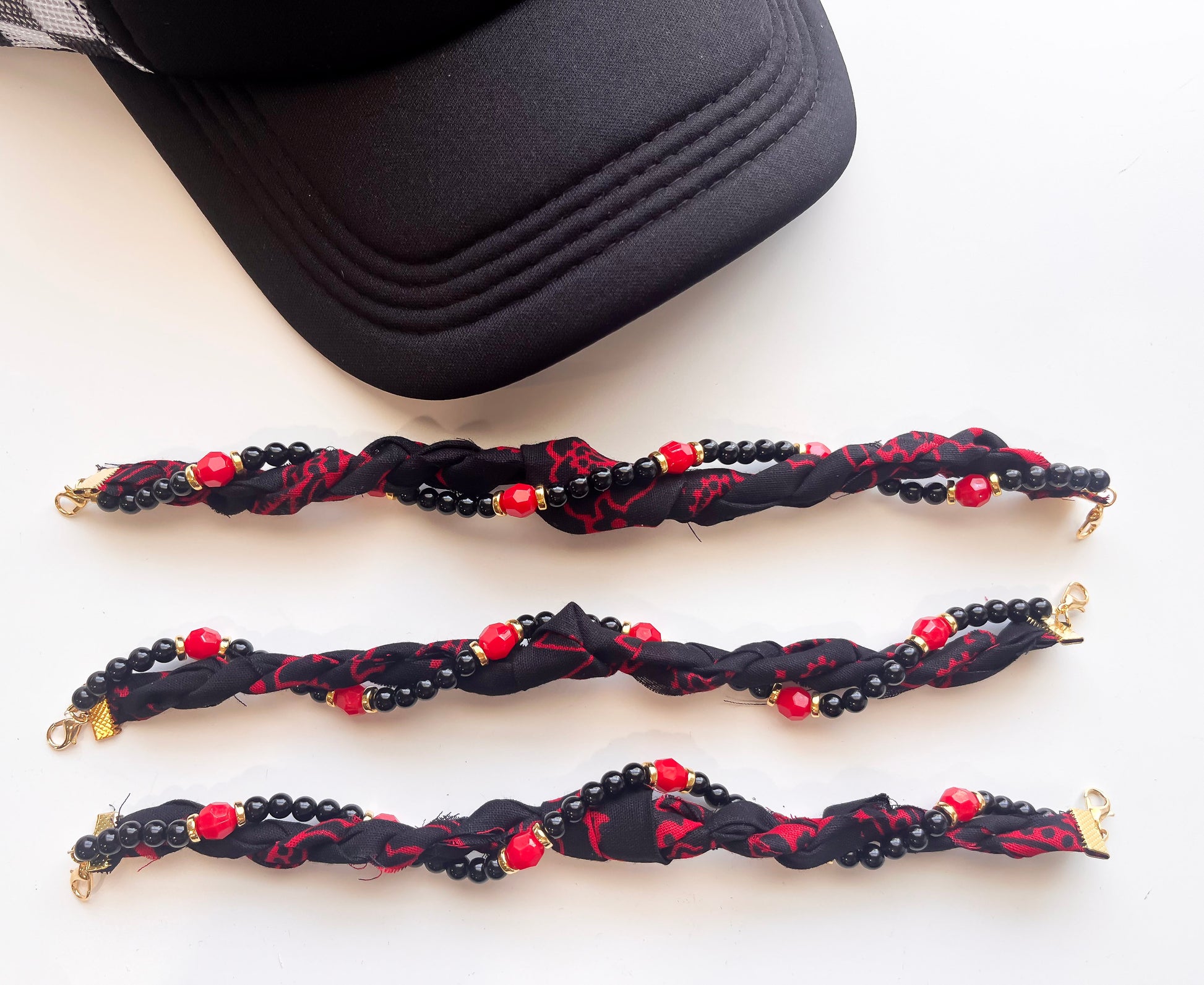 Moody Black/Red Design Twist Bandana Trucker Hat Chain