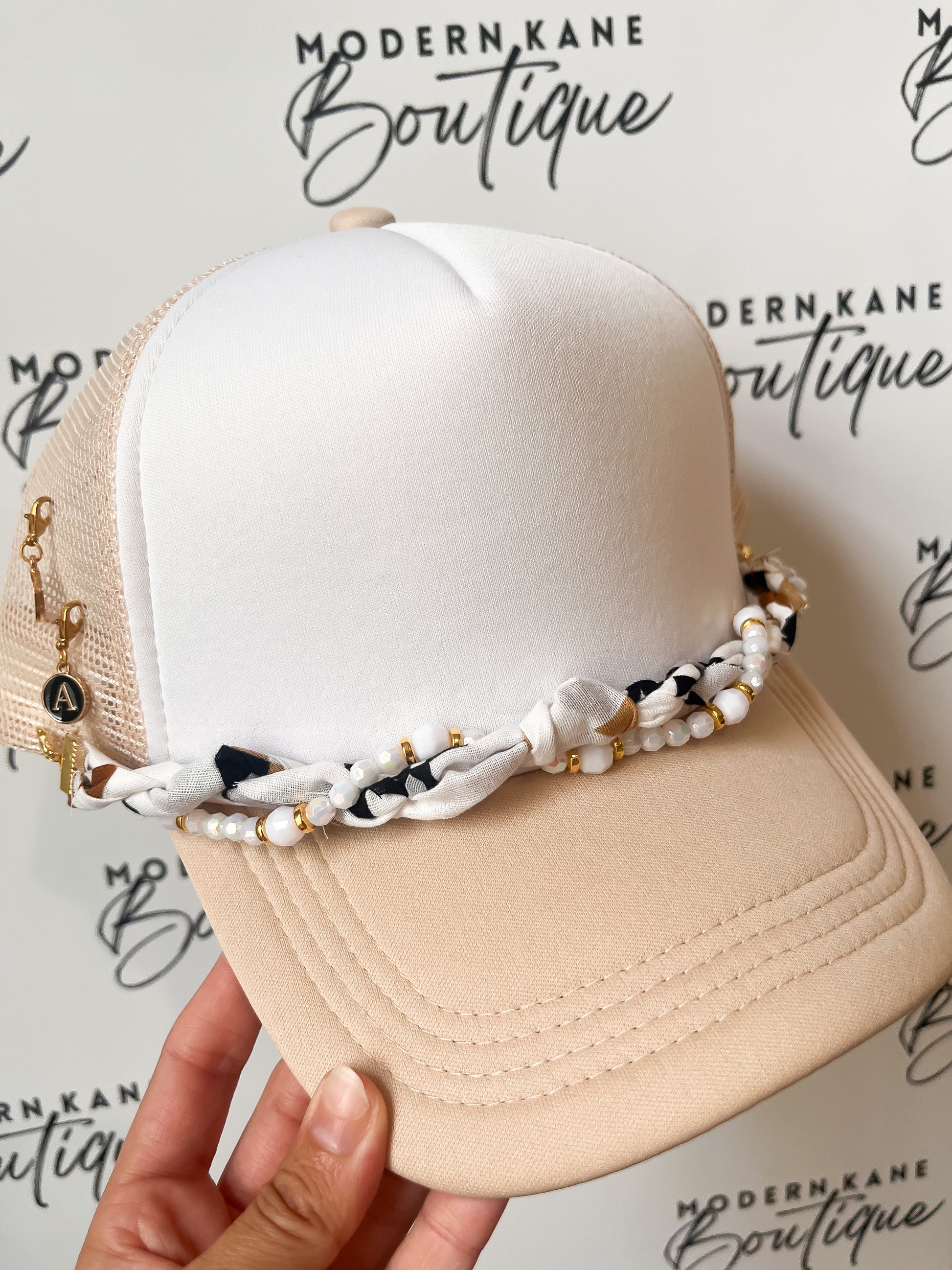 These Hat Chains fit Perfectly Across the Brim of your Trucker Hats and Attach to the MESH Part of the hat with a Lobster Clasp (Already attached to our hat chains)