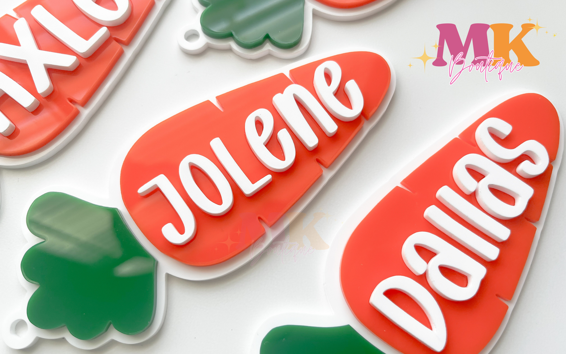 Add some color and personality to your Easter Basket with our Layered Name Carrot tags! Made with sturdy double-layered acrylic. Say goodbye to boring Gift bags with this customizable option.