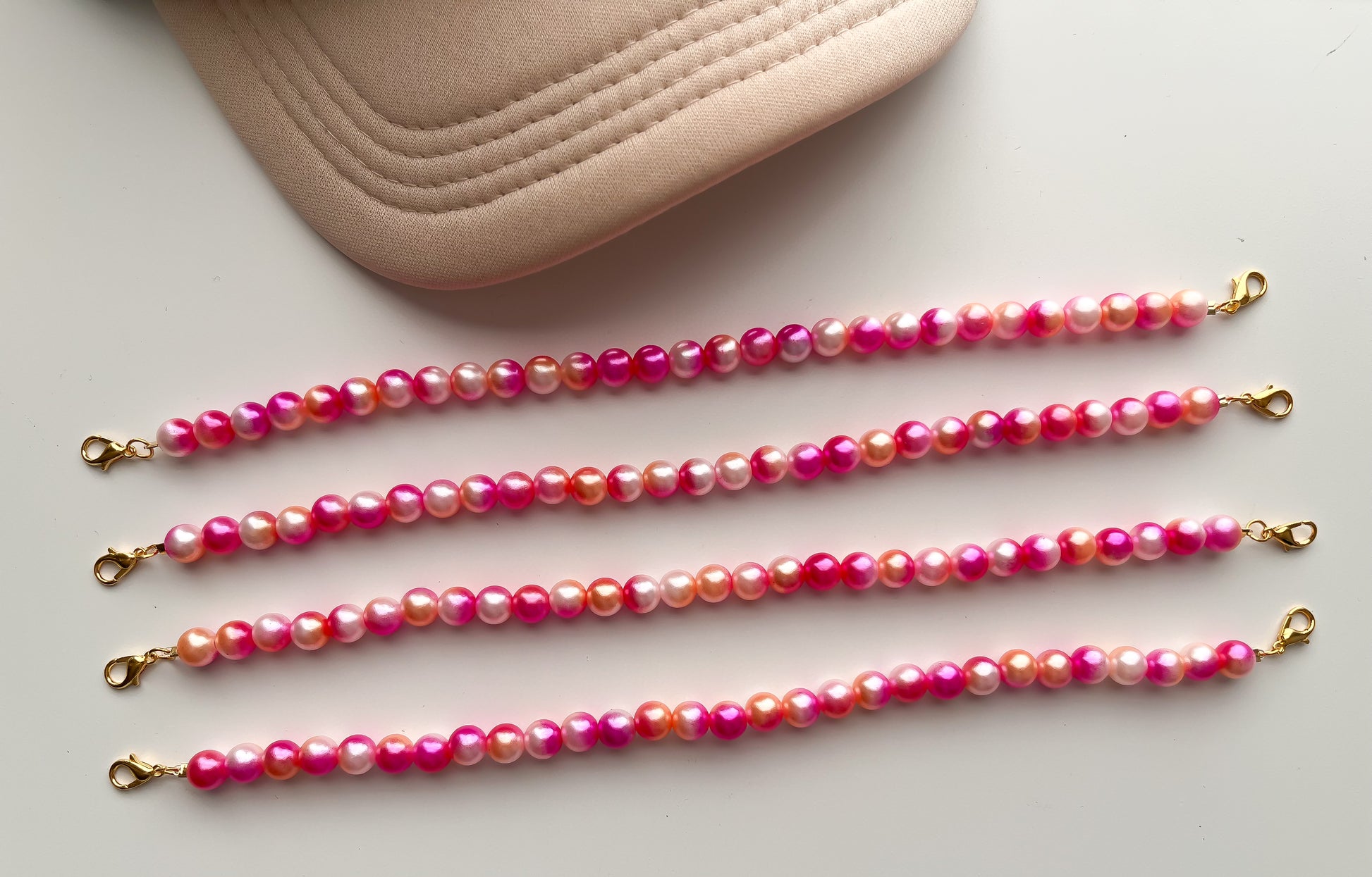 These Hat Chains fit Perfectly Across the Brim of your Trucker Hats and Attach to the MESH Part of the hat with a Lobster Clasp (Already attached to our hat chains)