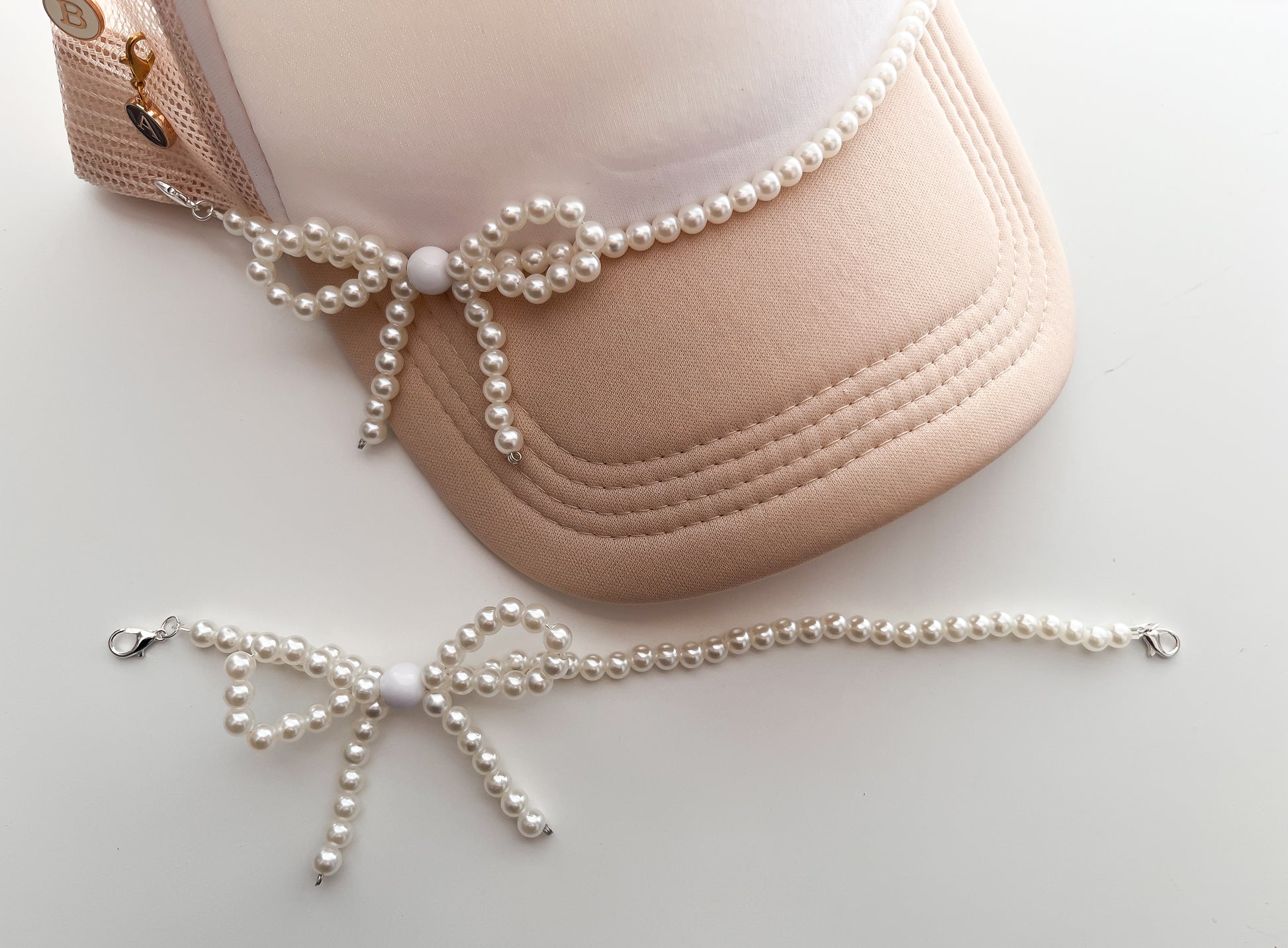 Trucker Hat Chain- Pearl/ White Middle Bow