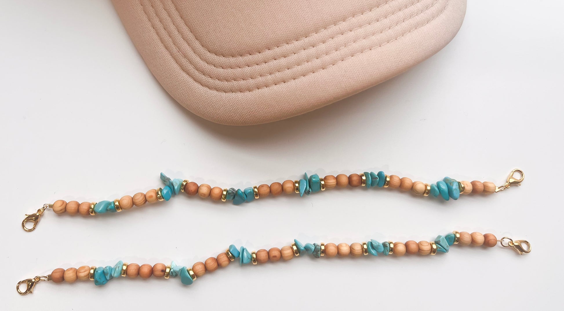 These Hat Chains fit Perfectly Across the Brim of your Trucker Hats and Attach to the MESH Part of the hat with a Lobster Clasp (Already attached to our hat chains)